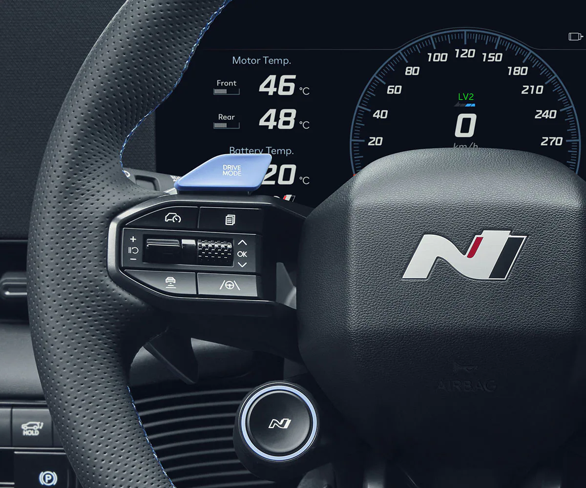 Infotainment System: Equipped with a 12.3″ infotainment touchscreen featuring navigation and N Mode for a personalized driving experience.